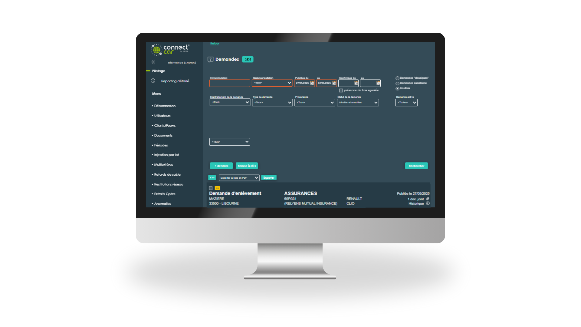 Extranet personnalisé spécialement conçu pour la gestion des dossiers de votre compagnie, Connect’Car permet de suivre la gestion et les performances de votre réseau.